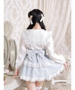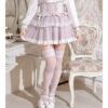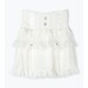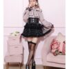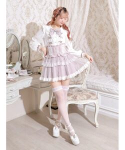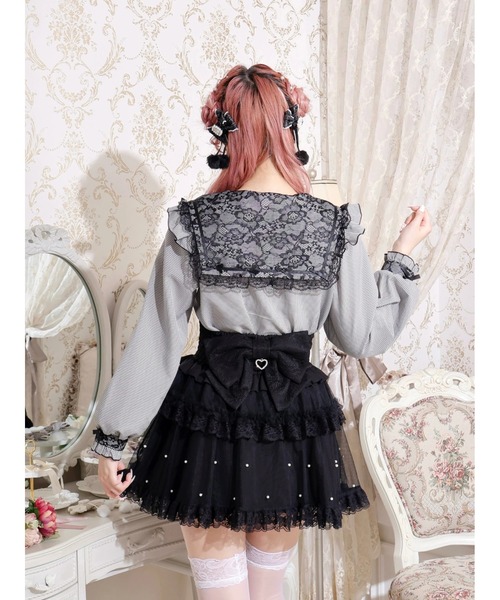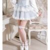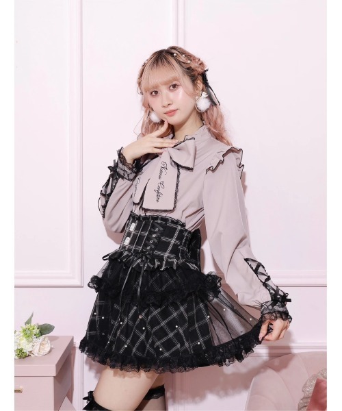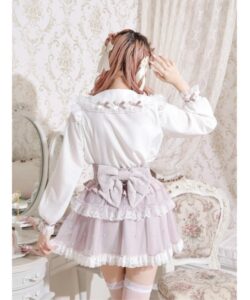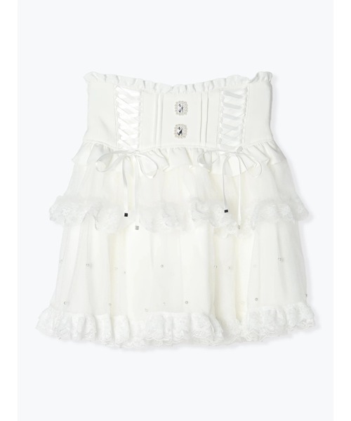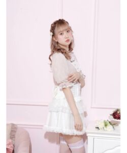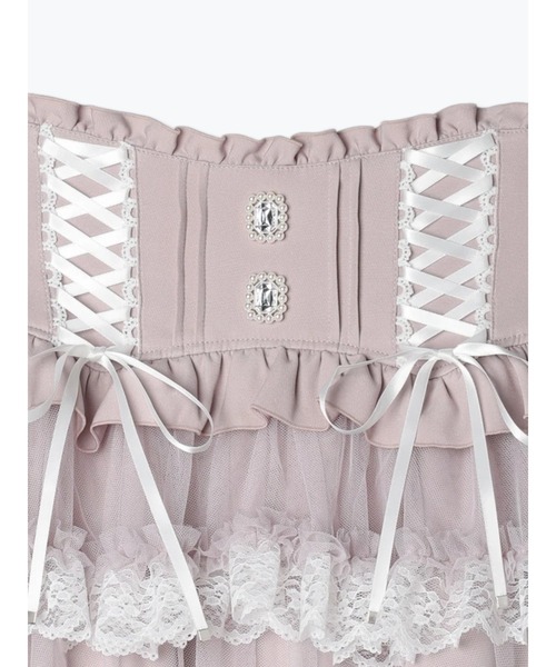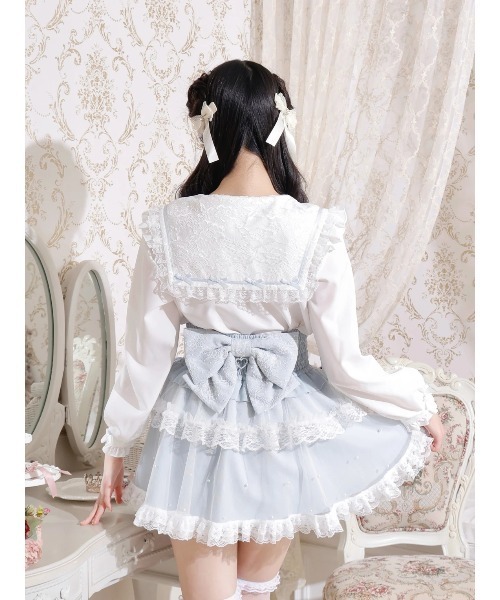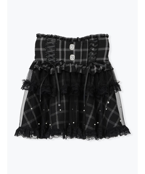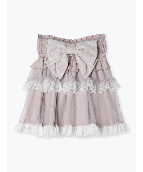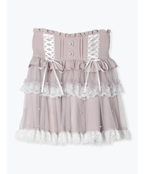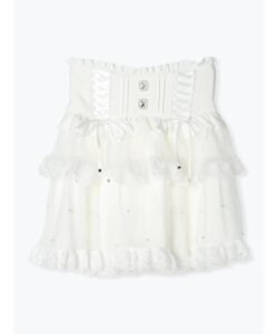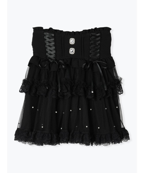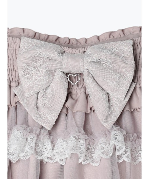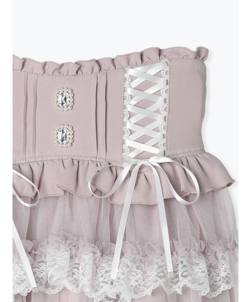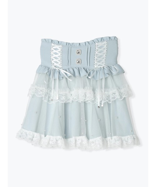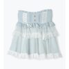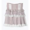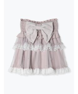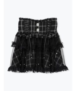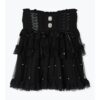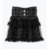 A skort crafted from sheer tulle material that creates a soft and airy impression.