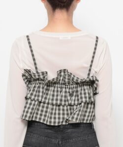 Elastic is placed all around for a comfortable fit, and the shoulder straps are adjustable, allowing you to wear it at your preferred balance.