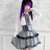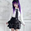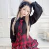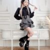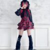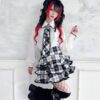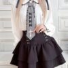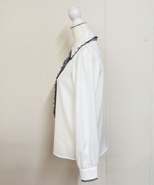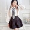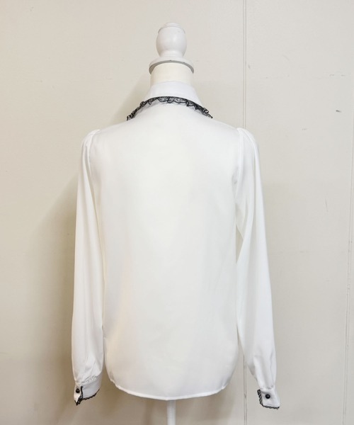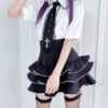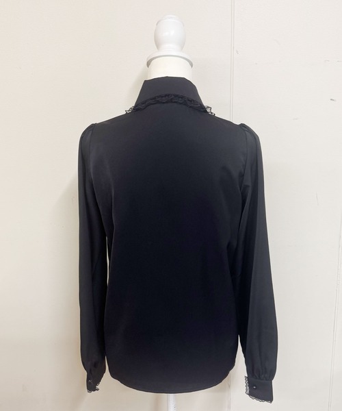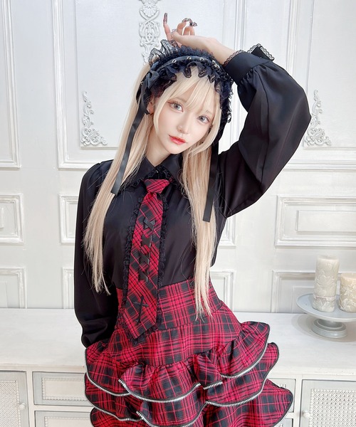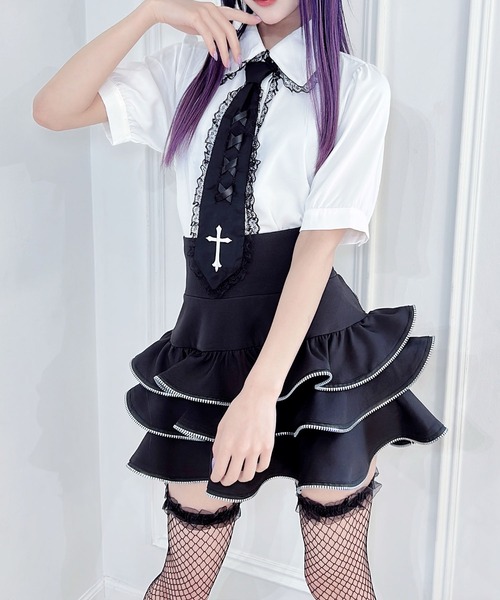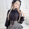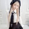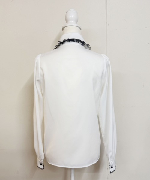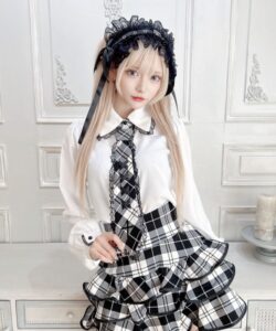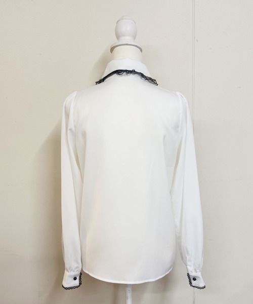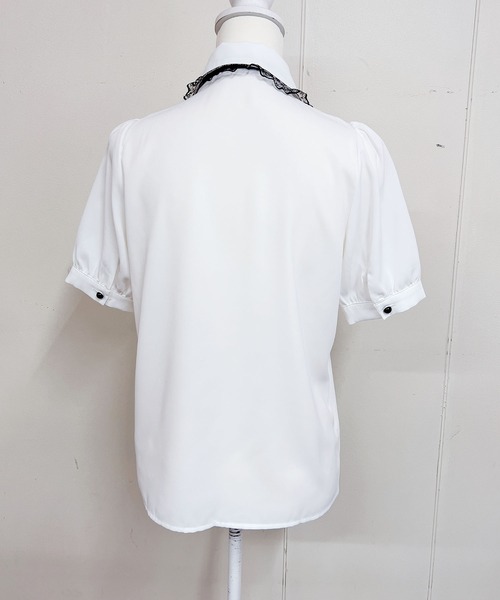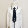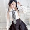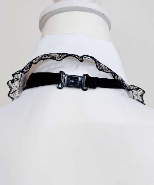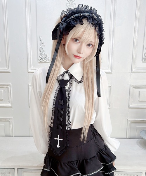 Delicate lace detailing around the collar and tie adds an extra touch of sweetness.
