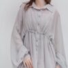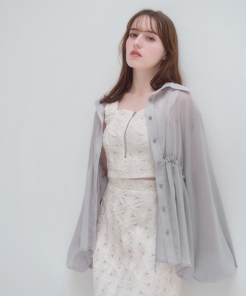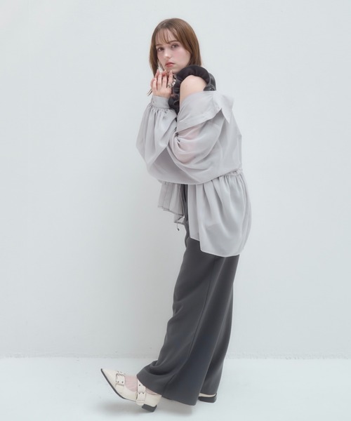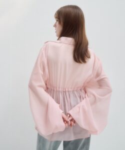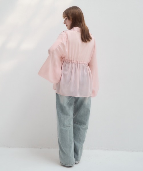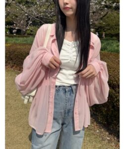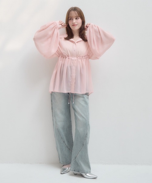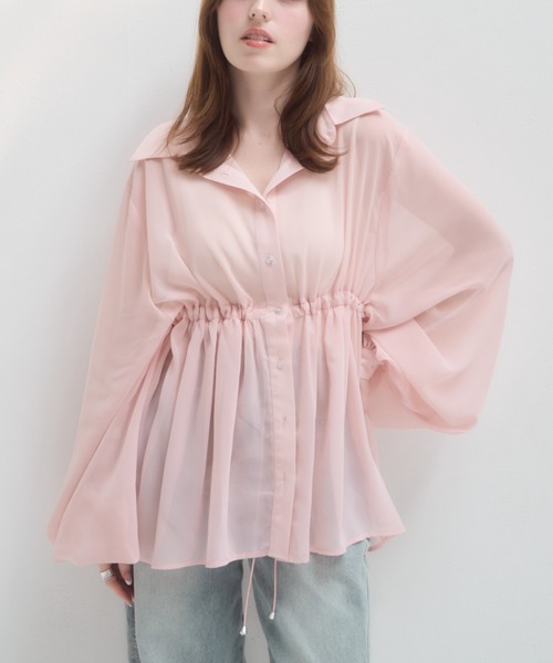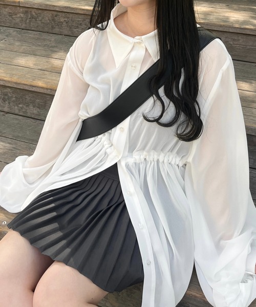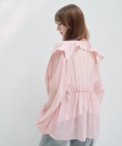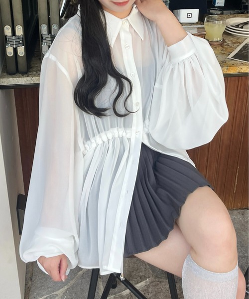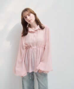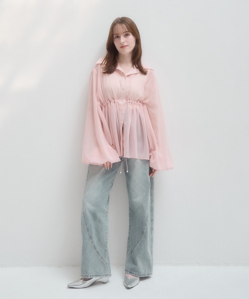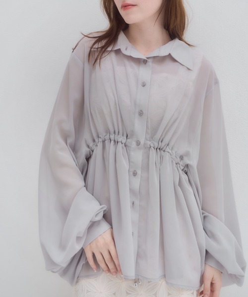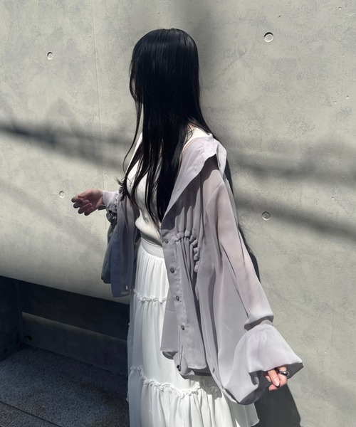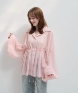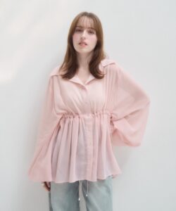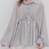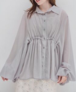 Even a relaxed sheer shirt that might otherwise look bulky can be styled with gathers positioned high under the bust.