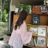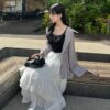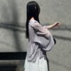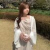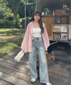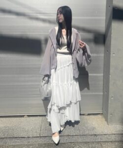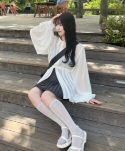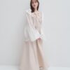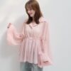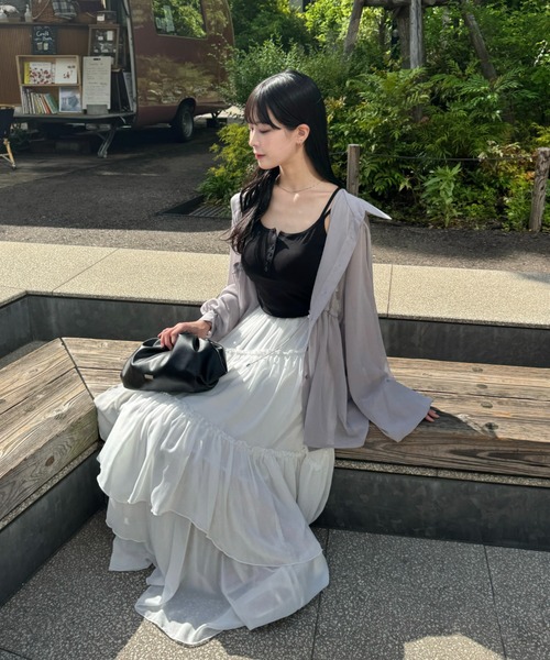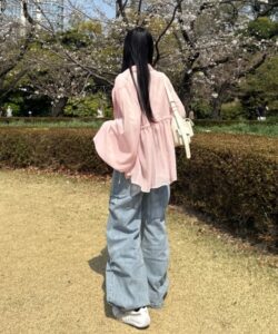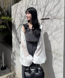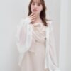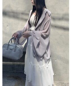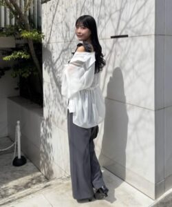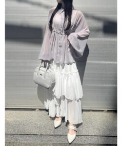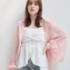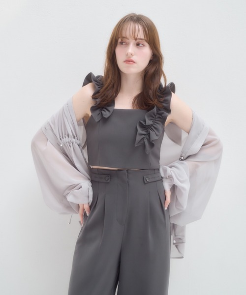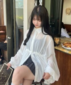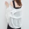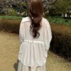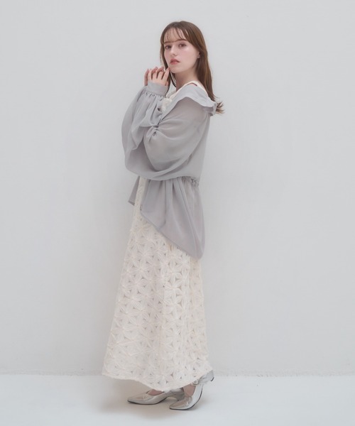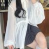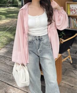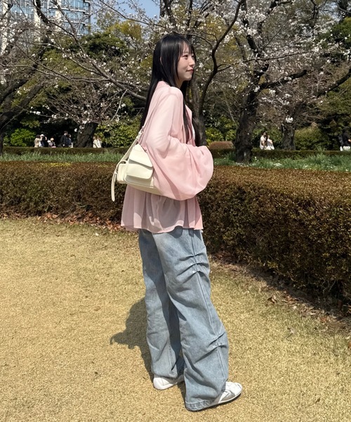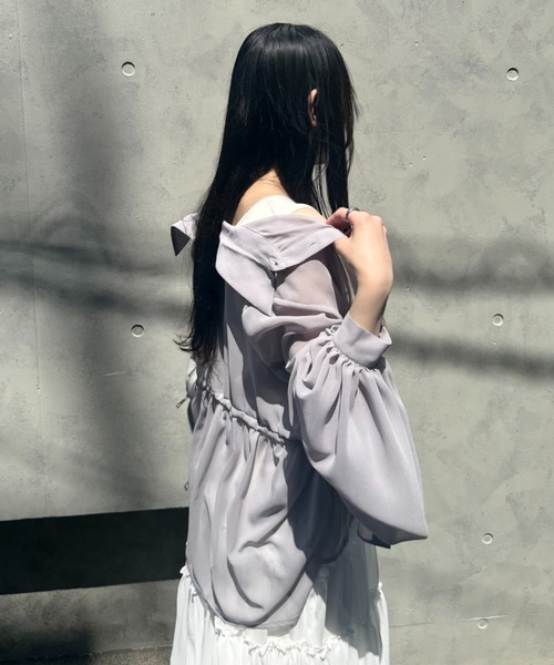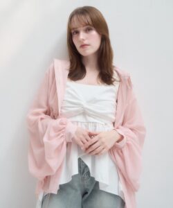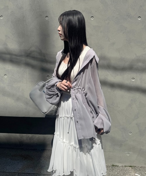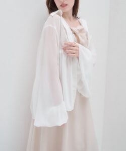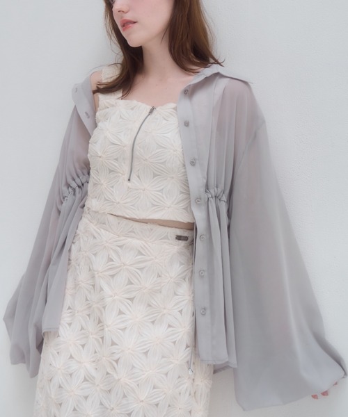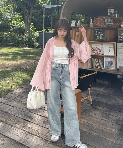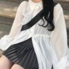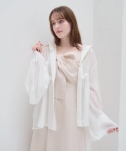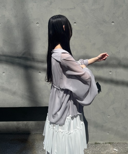 Even a relaxed sheer shirt that might otherwise look bulky can be styled with gathers positioned high under the bust.