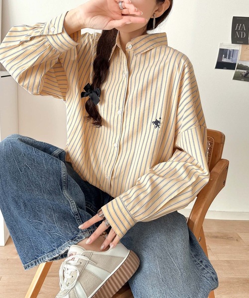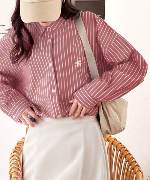 Designed to stand out with a retro-style embroidered accent, this adult-ready stripe shirt works across all seasons.