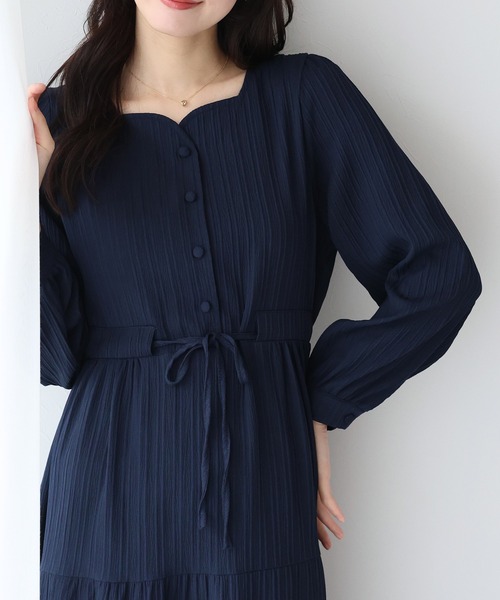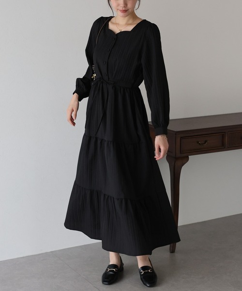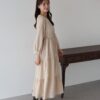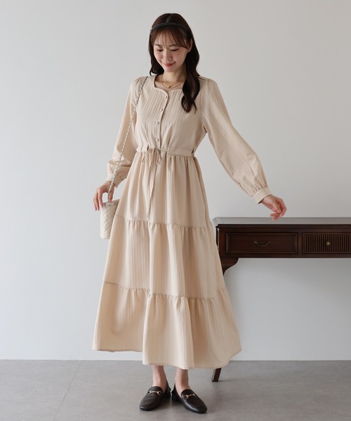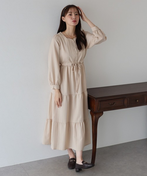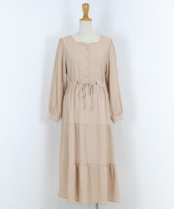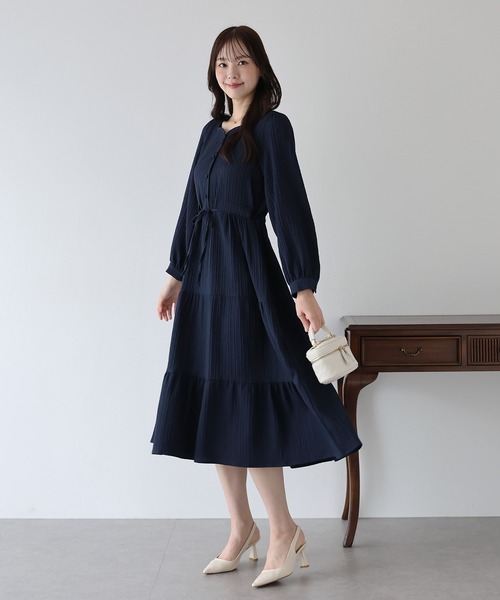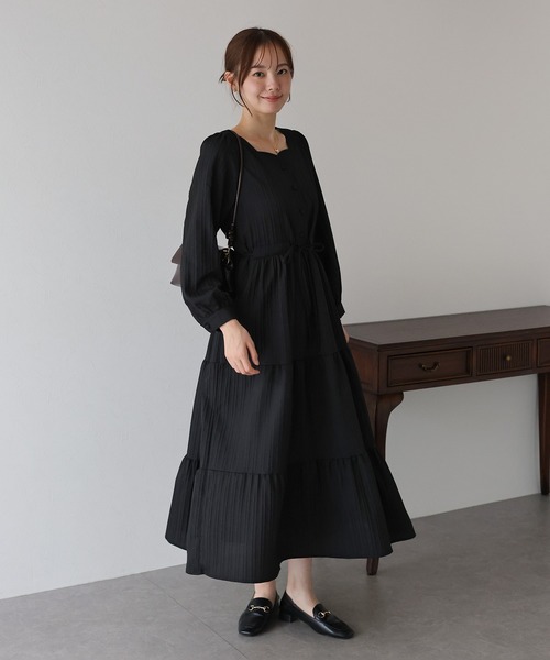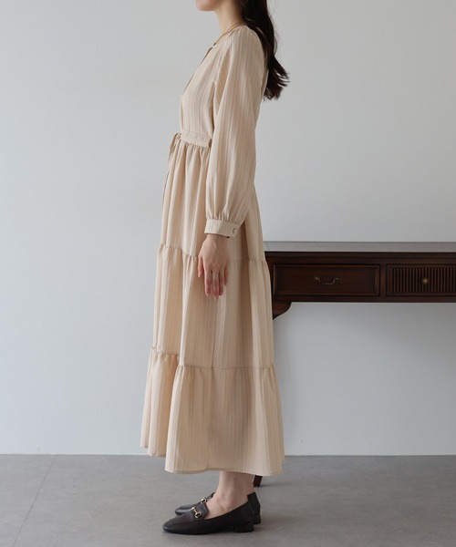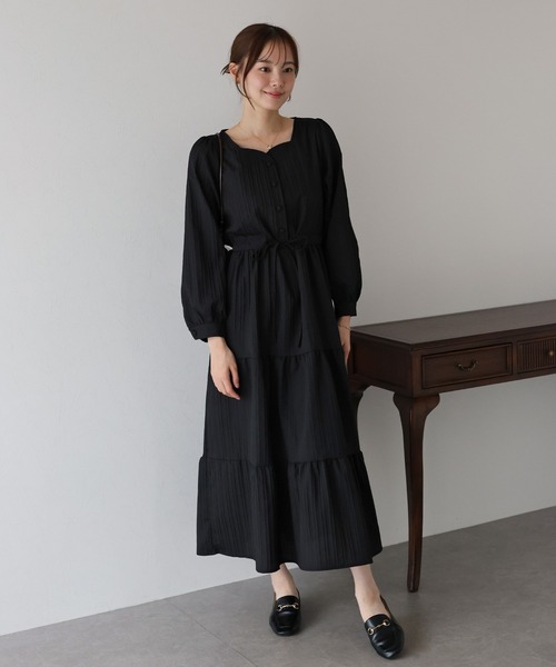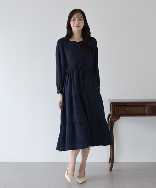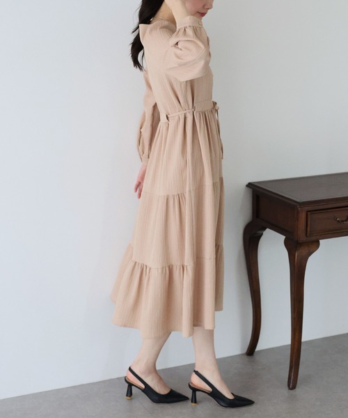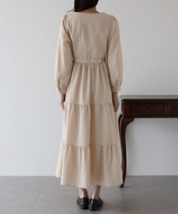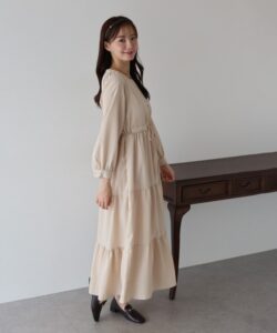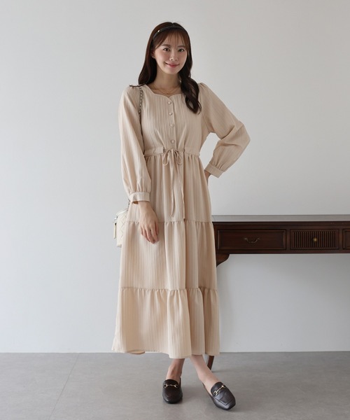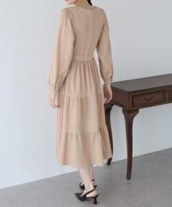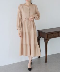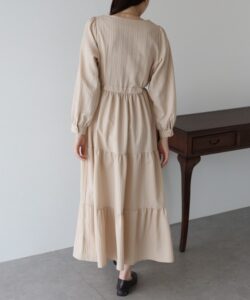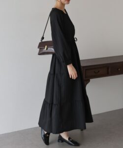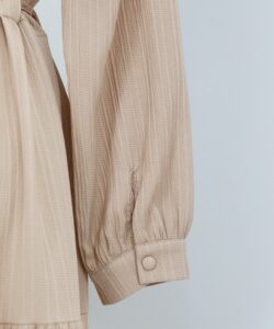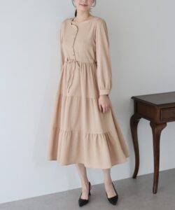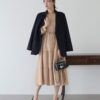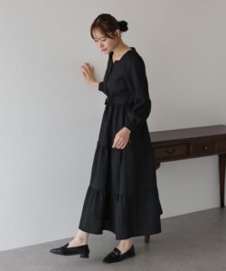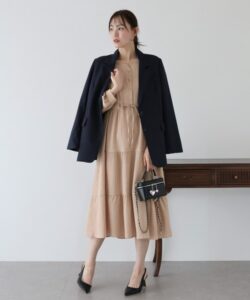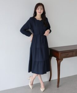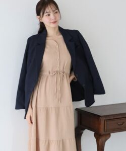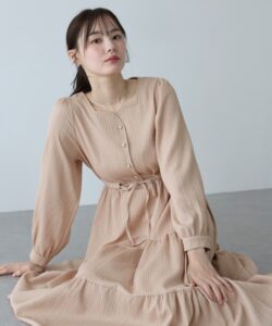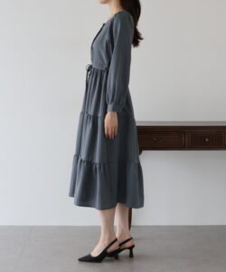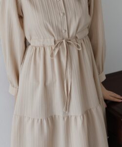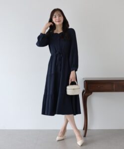 A waist ribbon adds definition to the shape, allowing you to style it with a graceful and feminine balance.