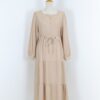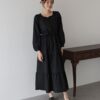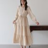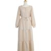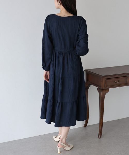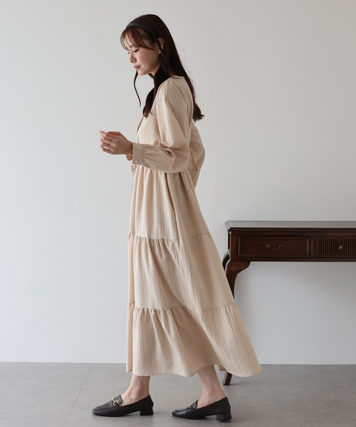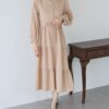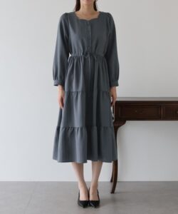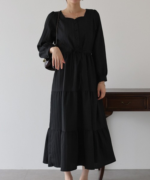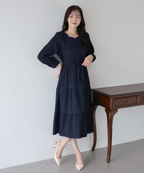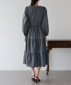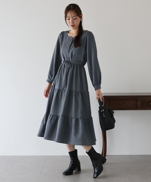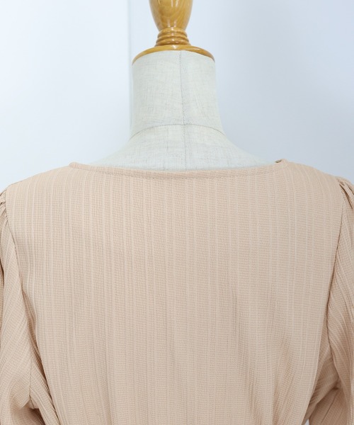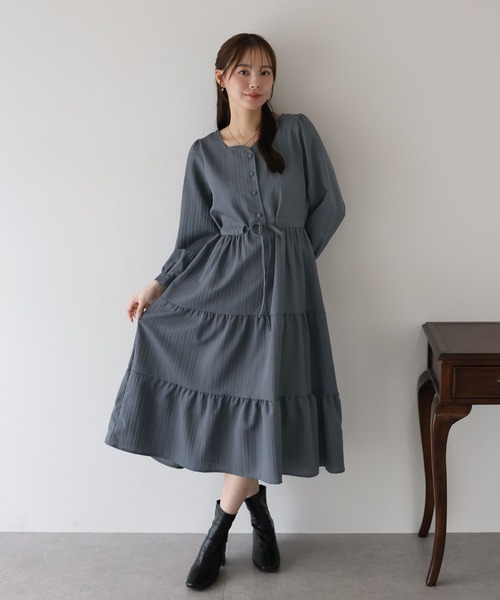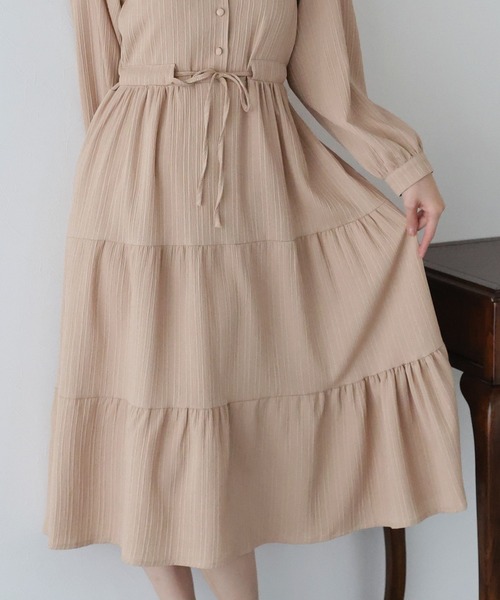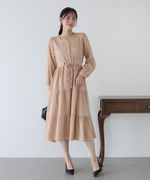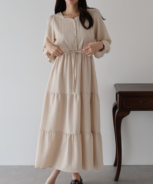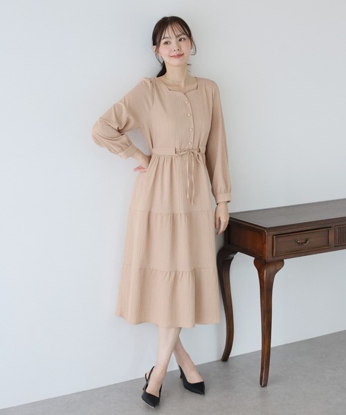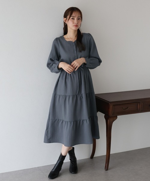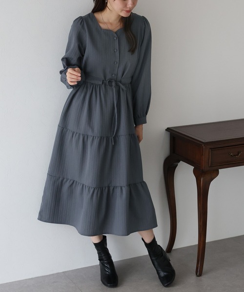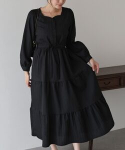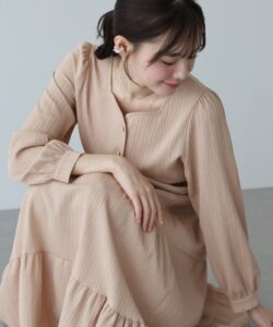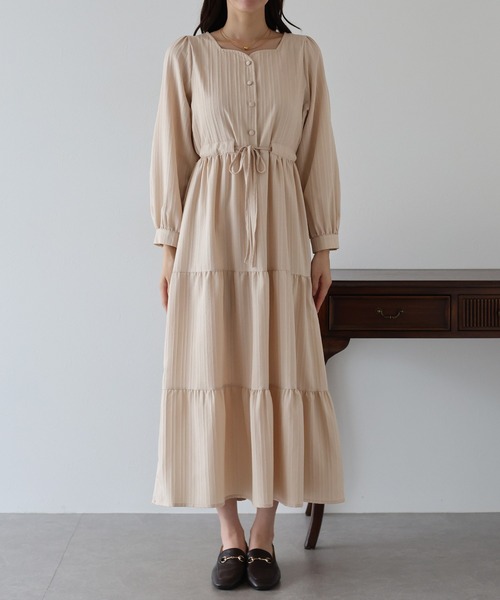 A waist ribbon adds definition to the shape, allowing you to style it with a graceful and feminine balance.