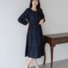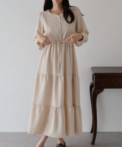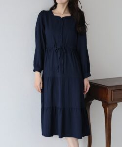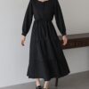 A clean yet lovely heart-neck dress that blends elegance with a charming mood.