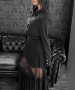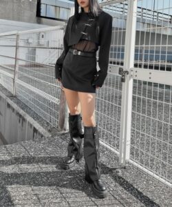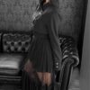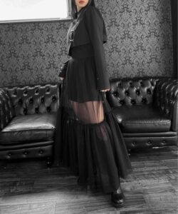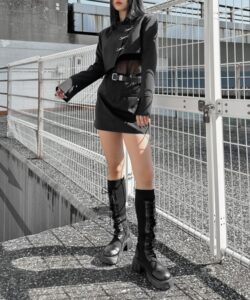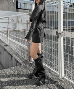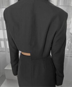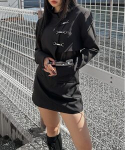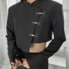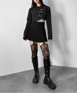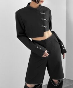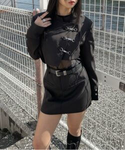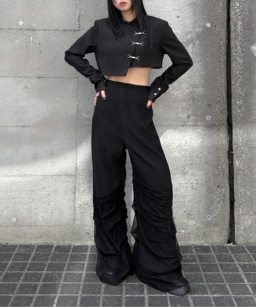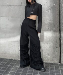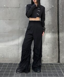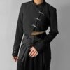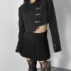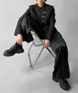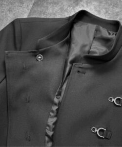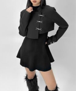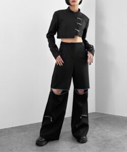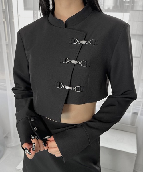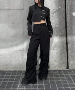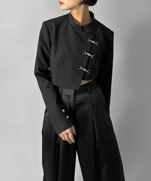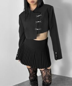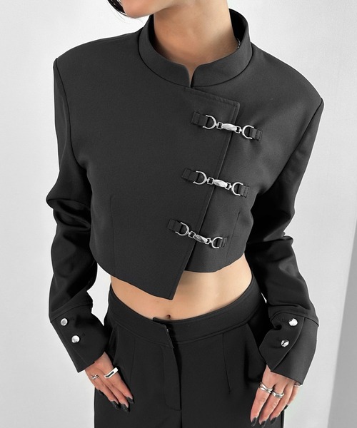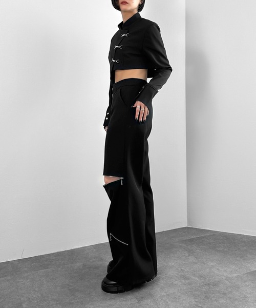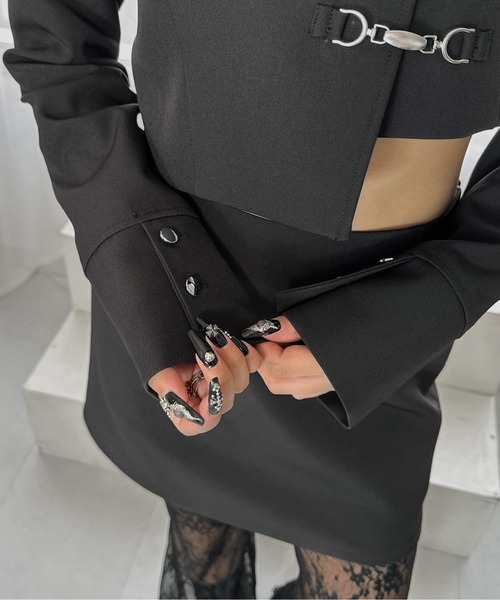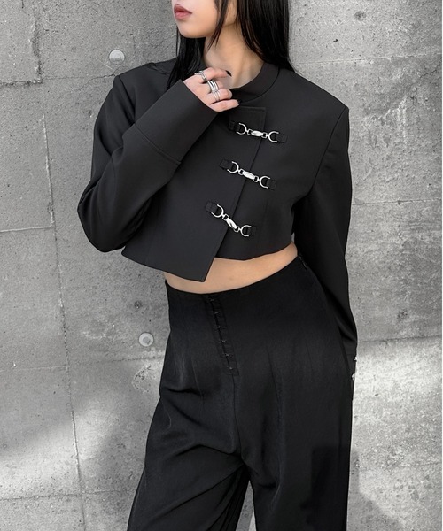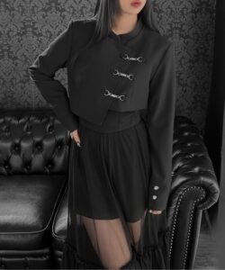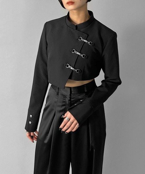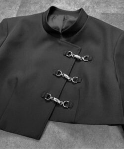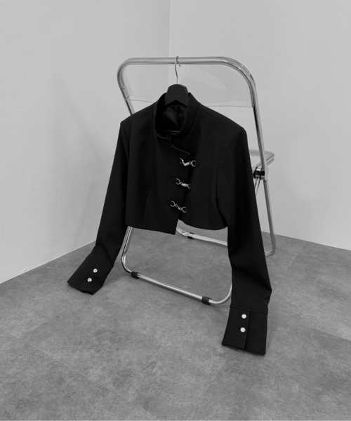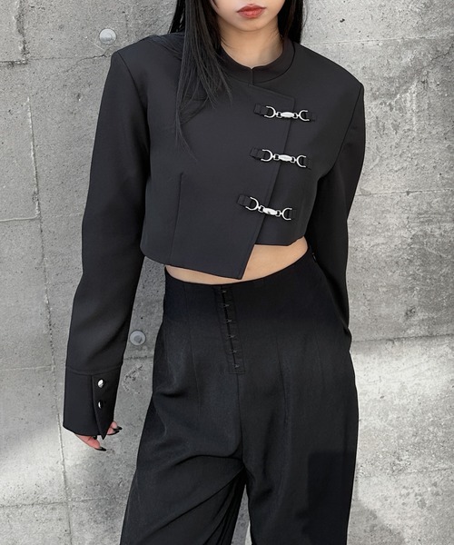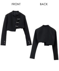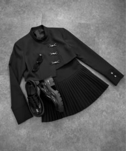 Inspired by a student-uniform-like silhouette, this piece incorporates an asymmetric design for a distinctive look.