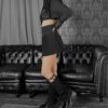 The front hook closure and cuff buttons are finished in silver, serving as subtle accent details.