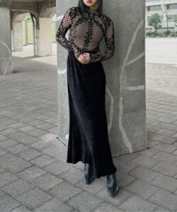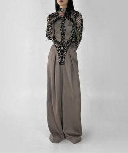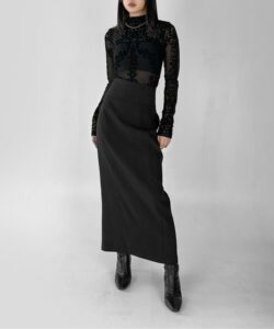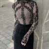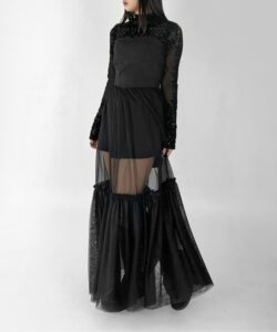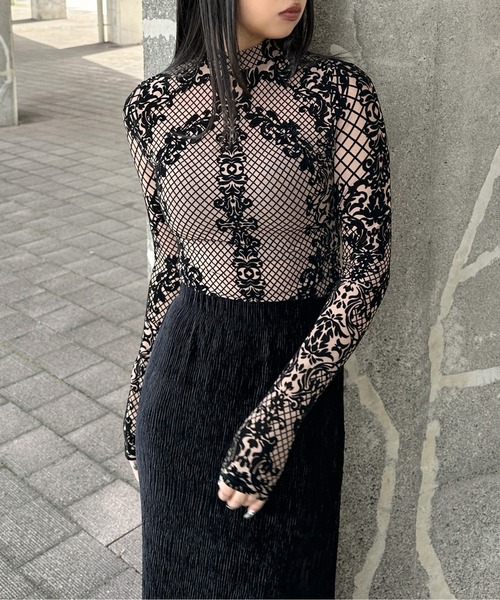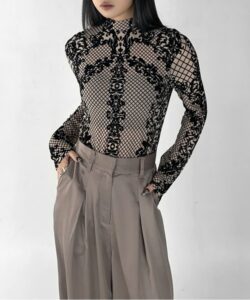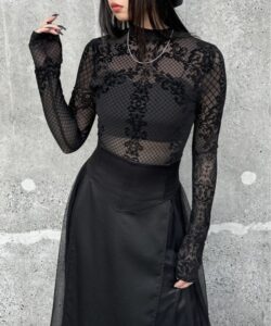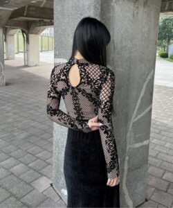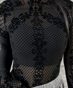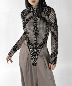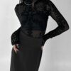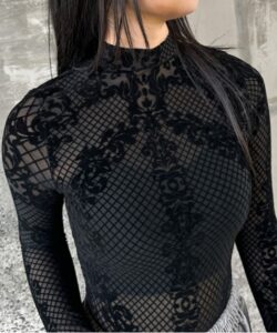 • The highly elastic mesh material fits the body and enhances a feminine silhouette