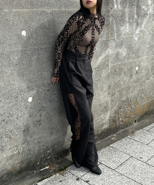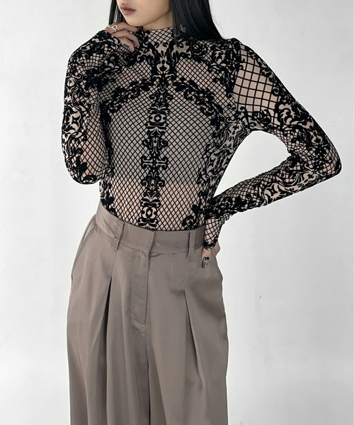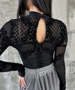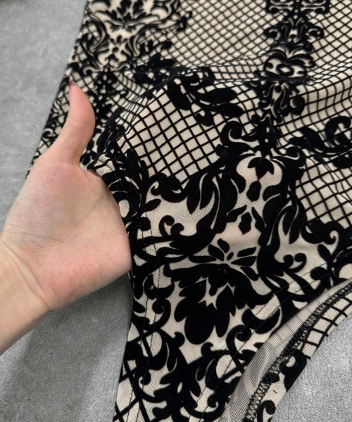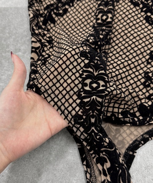 • Made from stretchable mesh fabric combined with velour lace detailing