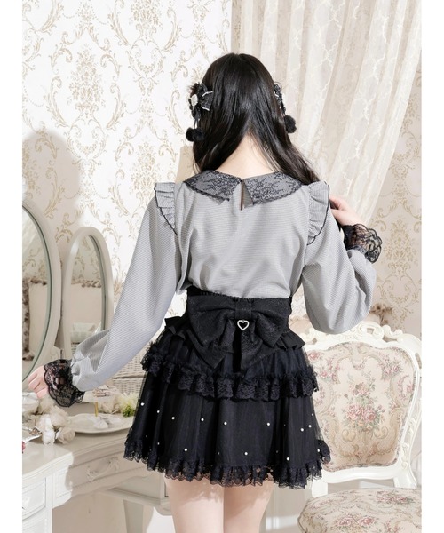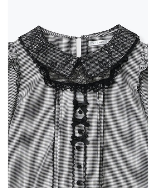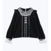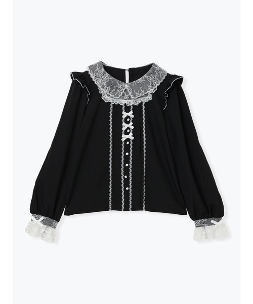 A blouse featuring front ribbon details that add a girly accent to the design.