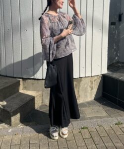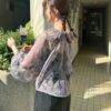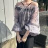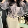 Perfect for spring and summer, this lightweight sheer blouse brings a refined and airy impression.