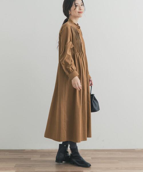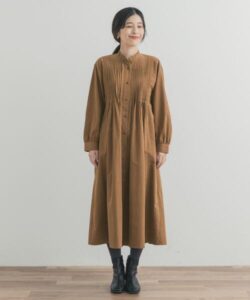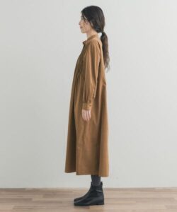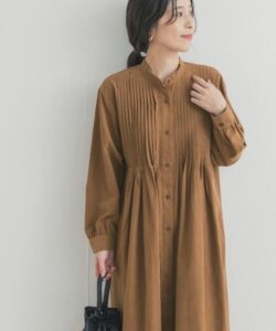 An elegant dress made from warm, peach-touch fabric with a soft and gentle texture.