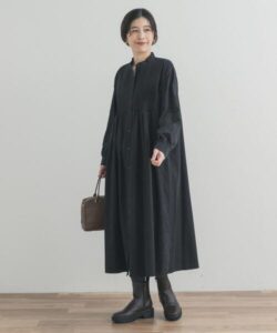 The calm color palette suits mature women, allowing the dress to look refined even when worn on its own.
