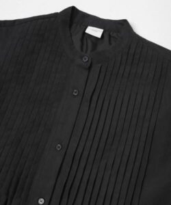 Bold pintuck details are generously placed at the chest, adding depth and dimension to an otherwise simple design.