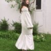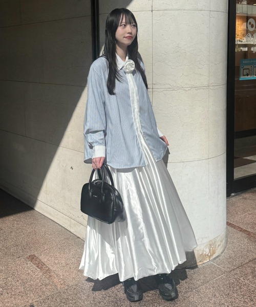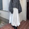 A satin balloon skirt featuring a softly flared silhouette that creates an elegant and airy impression.