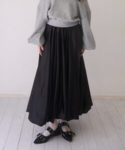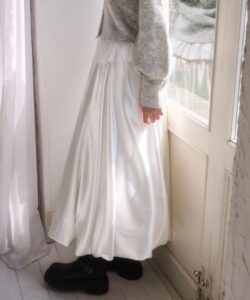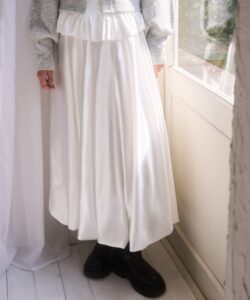 A satin balloon skirt featuring a softly flared silhouette that creates an elegant and airy impression.