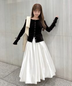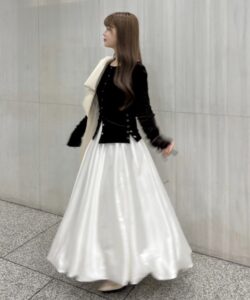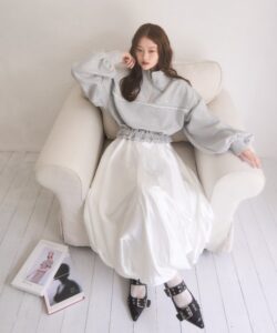 The rounded balloon hem allows you to enjoy a voluminous shape, giving the skirt a distinctive presence.