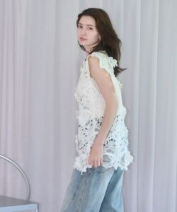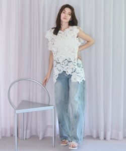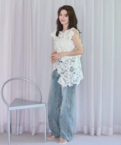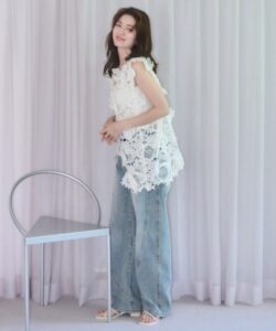 Designed with a sleeveless silhouette that delicately highlights the shoulders, it creates a feminine and graceful impression.