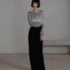 Made with a material adorned with bijoux details.